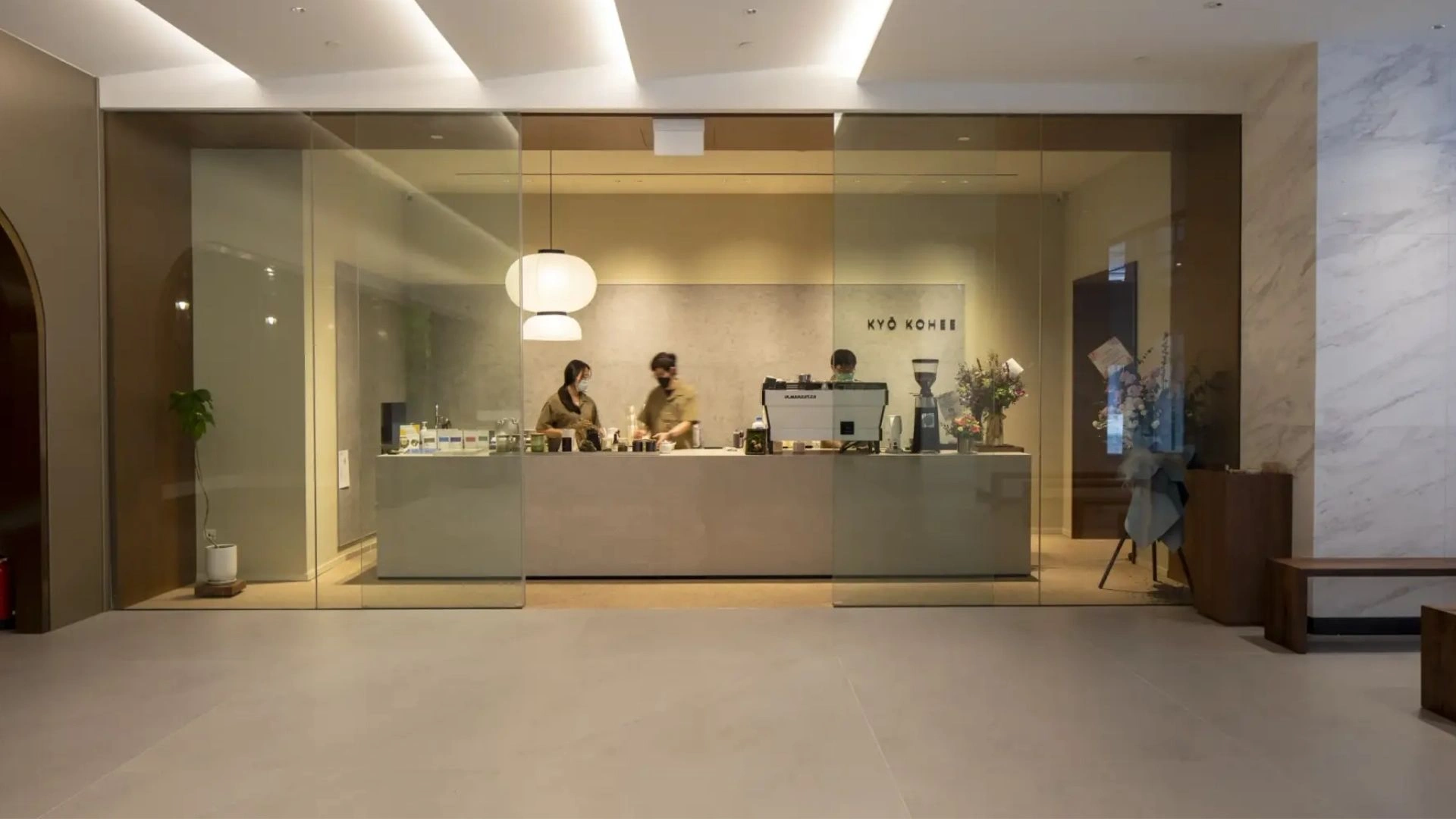 Featuring natural materials like oak to line the main entrance of the store, to the stone barista counter and muted tones for the store’s colour scheme, the interior balances simplicity and comfort with sleek and modern finishes. Soft ambient lighting enhances the calm atmosphere, with a minimalist barista counter fosters a mindful experience, blending serenity and the quiet joy of enjoying their beverages.