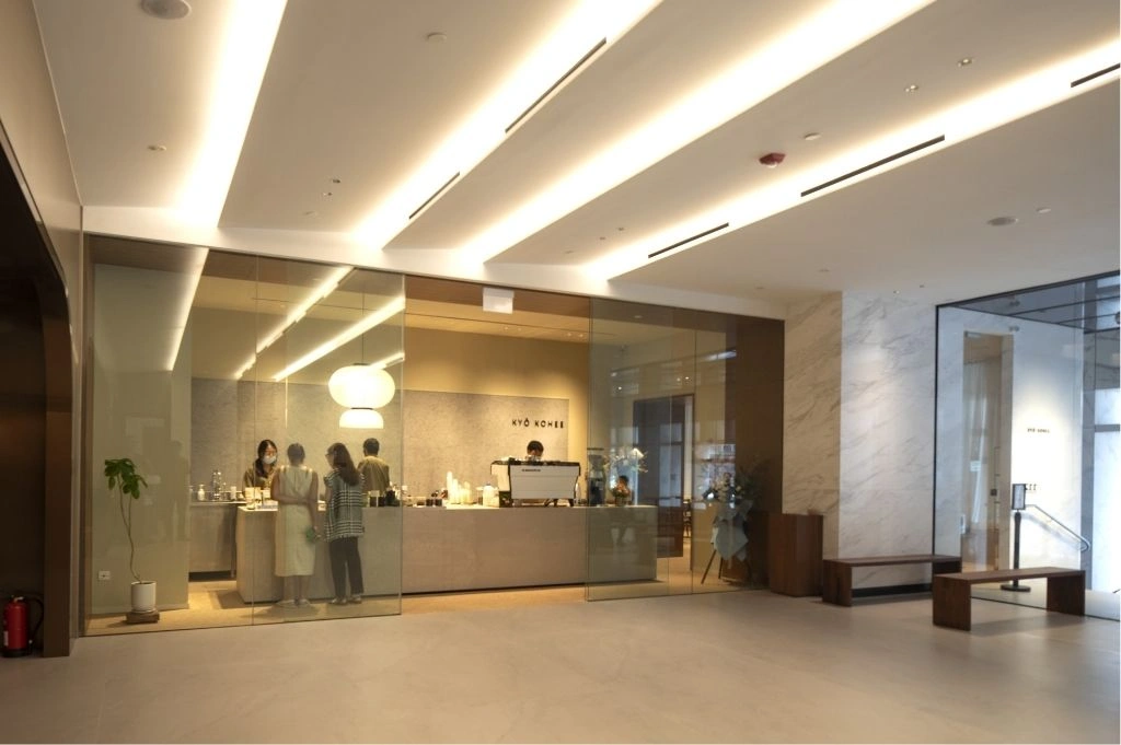 Featuring natural materials like oak to line the main entrance of the store, to the stone barista counter and muted tones for the store’s colour scheme, the interior balances simplicity and comfort with sleek and modern finishes. Soft ambient lighting enhances the calm atmosphere, with a minimalist barista counter fosters a mindful experience, blending serenity and the quiet joy of enjoying their beverages.